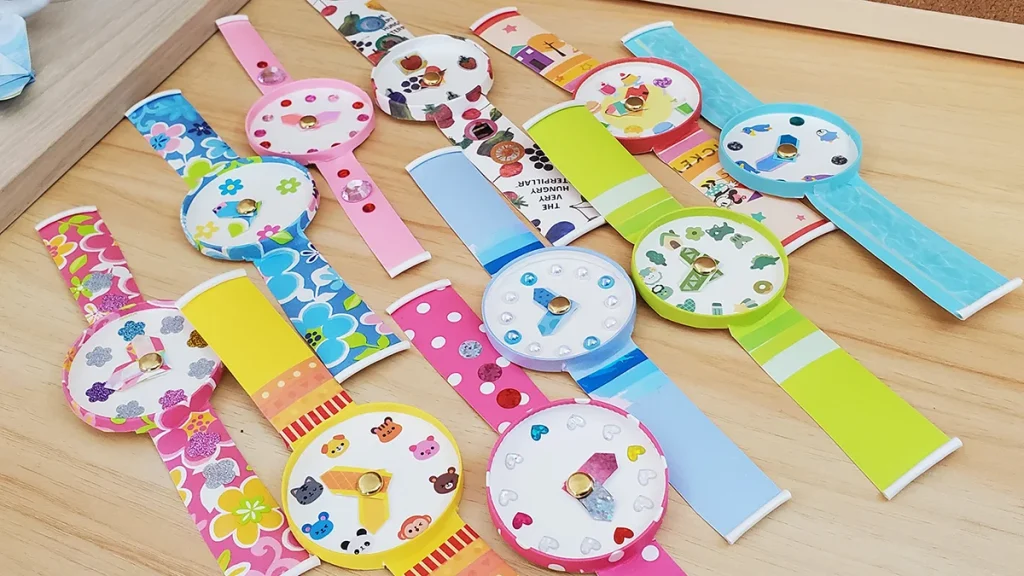 この項目では、下記のような子どもの腕時計の製作アイデアを紹介しますね。