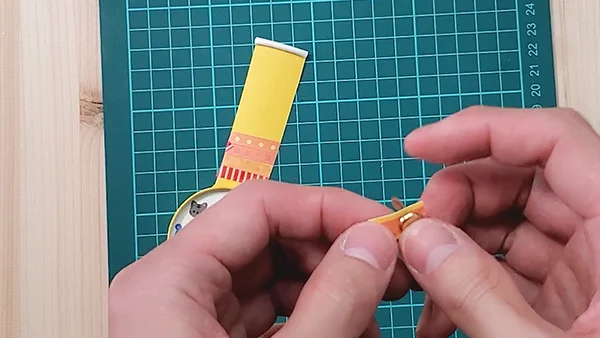 紙コップの切れ端で、時計の長針と短針を作ります。